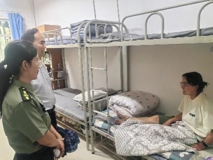 李永阳在辅导员陪同下,深入学生宿舍进行走访慰问,详细了解她们的学习生活情况,并看望受伤学生,仔细询问其伤情恢复和面临的困难,叮嘱其安心休养,让同学深切感受到了学院大家庭的温暖。