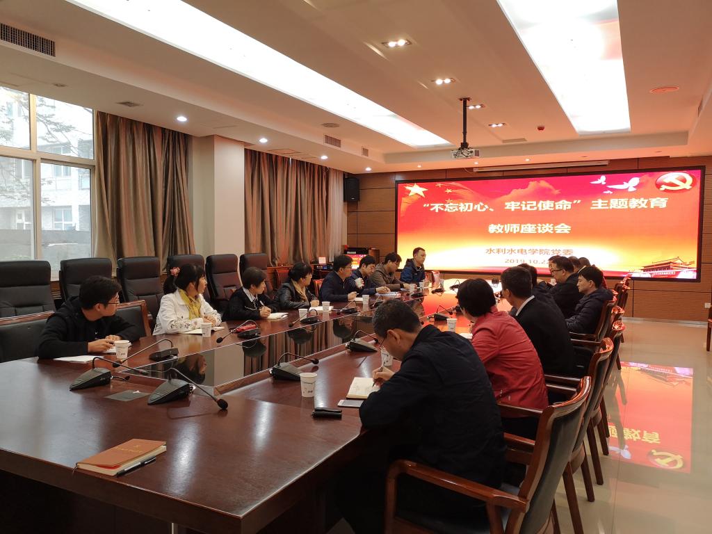 10月22日下午,PA集团官方网站在学科一号楼102会议室召开“不忘初心、牢记使命”主题教育教师座谈会。会议旨在认真贯彻落实学校主题教育工作要求和学院具体部署,深入教师开展调研,广泛听取教师对学院改革发展和院班子成员的意见建议,推进学院各项工作高质量开展。院党委书记程文,院长郭鹏程,院党委副书记、副院长李红英及各系所教师代表参加了此次座谈。