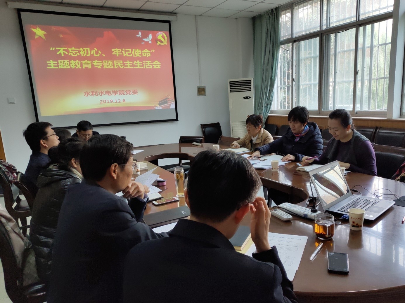 随后,学院班子成员逐一进行了个人检视发言,进行了严肃的批评与自我批评。大家聚焦“不忘初心、牢记使命”主题教育,紧扣学习贯彻习近平新时代中国特色社会主义思想这一主线,围绕“理论学习有收获、思想政治受洗礼、干事创业敢担当、为民服务解难题、清正廉洁做表率”的目标,按照“四个对照”“四个找一找”的要求,对照十九届四中全会精神,把自己摆进去、把职责摆进去、把工作摆进去,检视了存在问题、剖析了思想根源、明确了整改措施。自我批评实事求是、全面深刻,相互批评真点问题、直指关键,真正达到了“红红脸、出出汗”的目的。