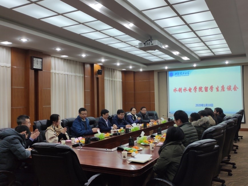 2020年1月10日上午,PA集团官方网站在101会议室召开2020年留学生座谈会。水电学院院长郭鹏程、国际合作与交流处副处长张志强、在校留学生导师以及留学生参加了座谈会。
