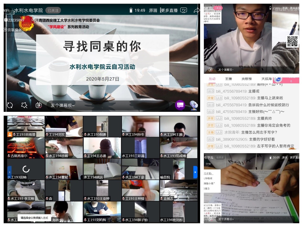 对于全新的自习安排,学生们感触颇深。水工181团支部曾成海说道,特别的“云自习”也能让自己感受到在校学习的氛围,通过这种方式,可以更好地消化和理解网课所学,每日的自习计划也是对学习效率和成效的检验。水工192团支部张睿鑫说道,新开设的“云自习”活动给了大家更多自主学习的时间,通过屏幕也能感受到班级里浓郁的学习氛围,相较于自己在家独自自习,同学们在一起学习的动力更大。
