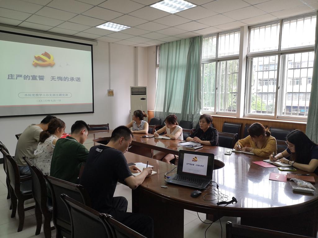 7月1日下午,PA集团官方网站学工办党支部在教四楼207会议室开展了题为“庄严的宣誓、无悔的承诺”的主题党课学习。党课由院党委副书记、副院长李红英主讲,支部全体党员参加学习。