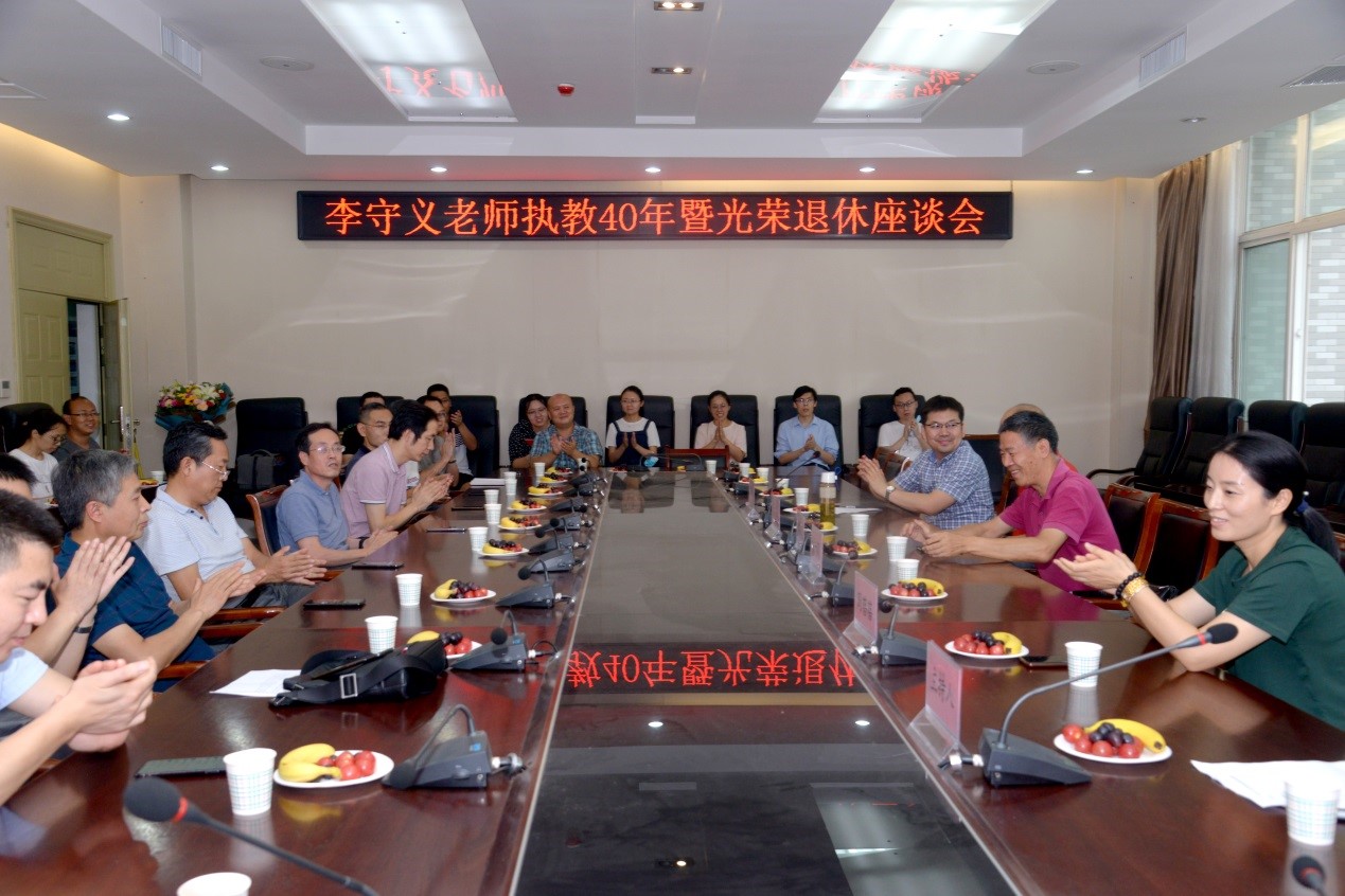 春华秋实又一夏,今夏最让人难忘!7月17日下午,PA集团官方网站工会与水利水电工程系在学科1号楼102会议室为李守义教授举行了执教40年暨光荣退休座谈会。参会人员有副校长刘云贺、PA集团官方网站院长郭鹏程、副院长兼工会主席周蓓蓓、李守义老师同学代表黄强教授以及全体水利水电工程系教师。座谈会由柴军瑞教授主持。
