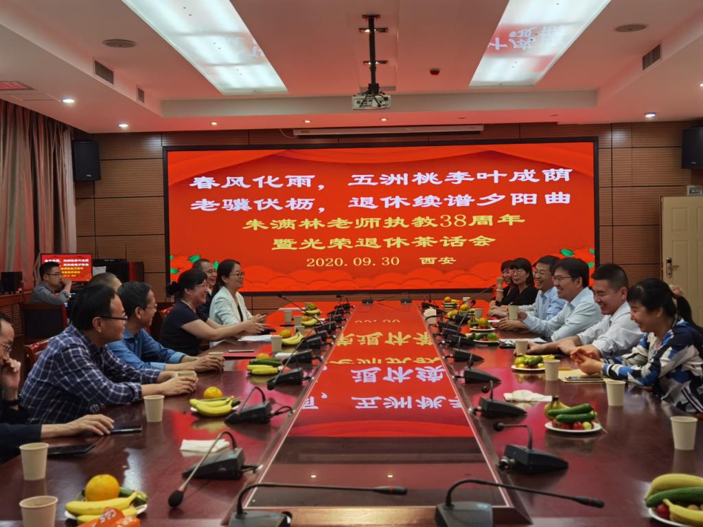 座谈会开始,大家通过视频回顾了朱老师执教以来的精彩片段。随后郭鹏程进行发言表达了对朱老师的衷心感谢,希望他一如既往地关心与支持学院的发展,祝愿他老有所乐,身体健康。程文回顾了朱老师执教期间在教学、科研、生活中的精彩故事,对朱老师严谨的工作态度,与人为善,为人低调的生活作风给予高度评价,并真诚的祝福朱老师退休的生活更加丰富多彩。冯民权,李炎隆,周蓓蓓三位副院长也表达了对朱老师崇高的敬意和真挚的祝福,高度赞扬了他踏实、奉献的工作态度,感谢朱老师把自己的年华都献给了教育事业。朱满林老师的同窗好友李怀恩教授,白丹教授,张晓宏教授分享了他们的同窗友情。随后朱老师动情地抒发了自己的退休感言,分享了任教以来的工作心得,他说:“师者,传道受业解惑,不仅要会教书,还要懂得育人。”