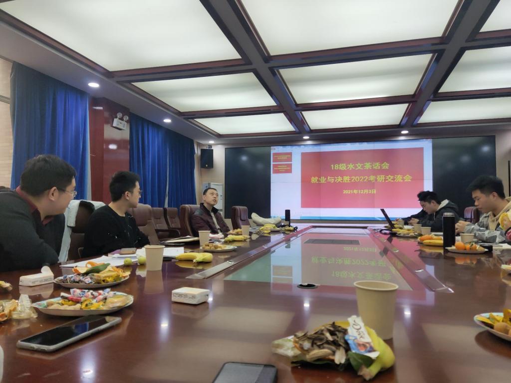 12月3日下午,PA集团官方网站水资系在学科一号楼311会议室召开水文18级就业暨决胜2022考研交流茶话会。水资系副教授白涛,水力学所副教授荆海晓,学工办辅导员高重,2019级硕士研究生刘哲和李静受邀参加,会议由水文182班导师杨元园主持。