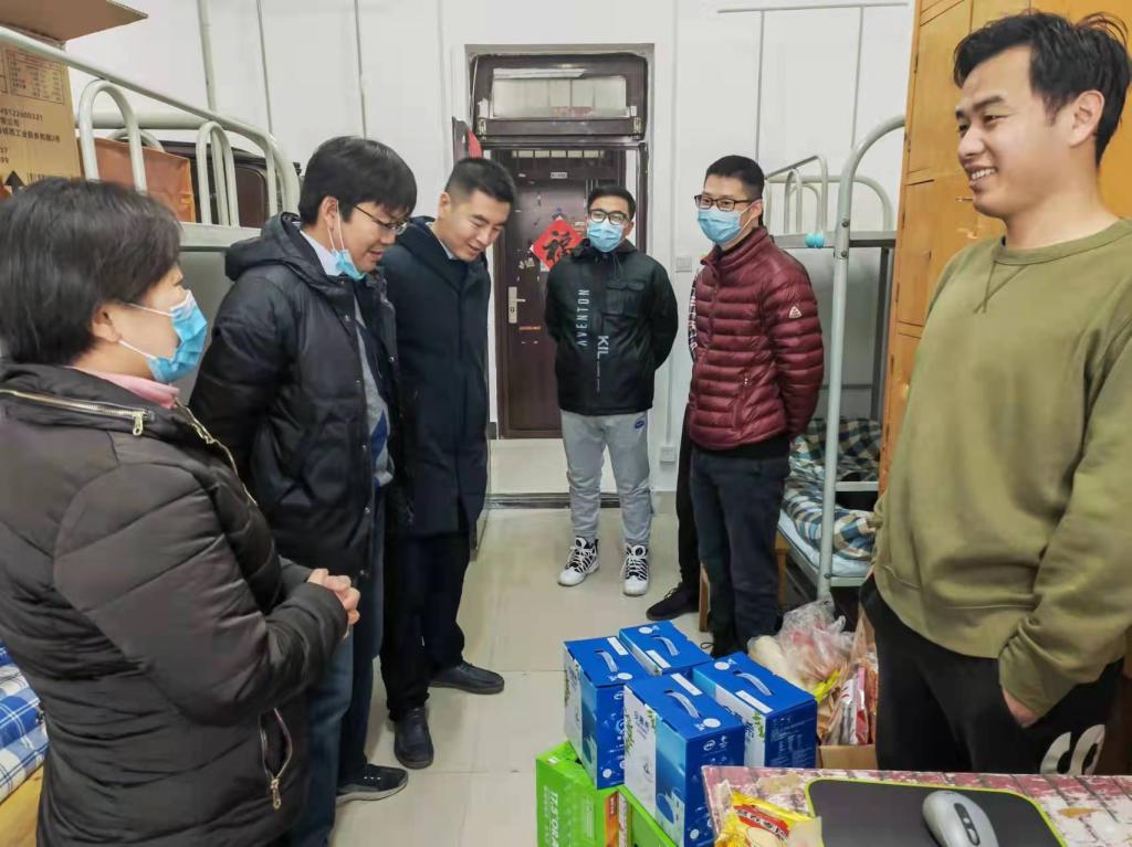 在学生集中住宿的六号公寓里,院班子成员与4位学生亲切交谈,仔细询问了每个人的假期安排及家乡疫情状况,并与两名博士生就正在撰写的论文情况进行了交流。郭鹏程叮嘱学生,要常与亲友保持联系,送去祝福,并坚持每日报平安。他要求,留校学生要持续做好个人防护,严格落实疫情防控措施;要严格遵守校纪校规,注意在校安全,特别是在宿的用电安全。此外,学院还为学生送去了新年慰问,期待大家带着学校学院的祝福度过一个温暖且有意义的春节。