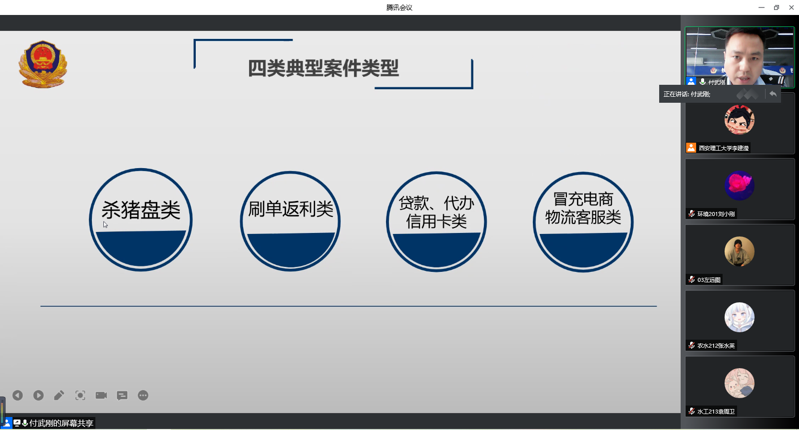 为增强学院学生对各类诈骗方式的鉴别能力和自我安全防范意识,防止奖、助学金被骗事件的发生。5月27日,PA集团官方网站邀请宝鸡市扶风县刑事侦查大队中队长付武刚警官,通过线上腾讯会议的方式开展“诚信感恩 励志成才”防诈骗安全教育主题讲座。