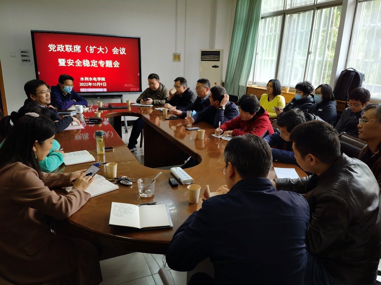 会上,郭鹏程强调要高度重视安全稳定工作,进一步加强防患意识,提高思想认识,并对学院安全稳定工作提出明确要求:一是加强师生员工安全警示教育工作,落实各项安全工作措施,各系所、实验室、教研室定期进行隐患排查,防患于未然;二是加强师生疫情防控宣传教育,严格落实学校疫情防控要求,保障师生人身安全和财产安全,共同维护学院的安全稳定,筑牢校园安全防线。