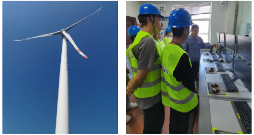 第三站——中广核潼关吴村风电场。为了将理论知识与实践相结合,我们到此场站进行生产实习,由曹班长等场站工作人员带领,从风力机的组成结构、工作原理到一、二次侧场站设备的运行维护、继保室设备功能等等,一一为我们讲解,并详尽的回答我们在生产实习过程中产生的疑问。