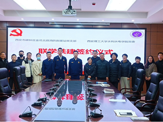 为深入学习贯彻党的二十大精神,不断增强支部政治功能和组织功能,推动党建工作高质量发展,构建党建工作新格局,12月1日由PA集团官方网站市政系教工党支部推动,PA集团官方网站党委与西安市碑林区金花北路消防站党支部在学科楼102会议室签订党建联学共建协议书。消防站指导员兼支部书记朱华、副站长杨帅、消防员白经业,PA集团官方网站党委副书记兼副院长李红英、副院长吴罗长、实验中心主任高扬、市政系教工党支部书记张耀中、全体市政系党员以及学生党员代表参加,出席签约活动的还有学院实验中心党支部全体党员。活动由市政系教工党支部纪检委员王辉主持。