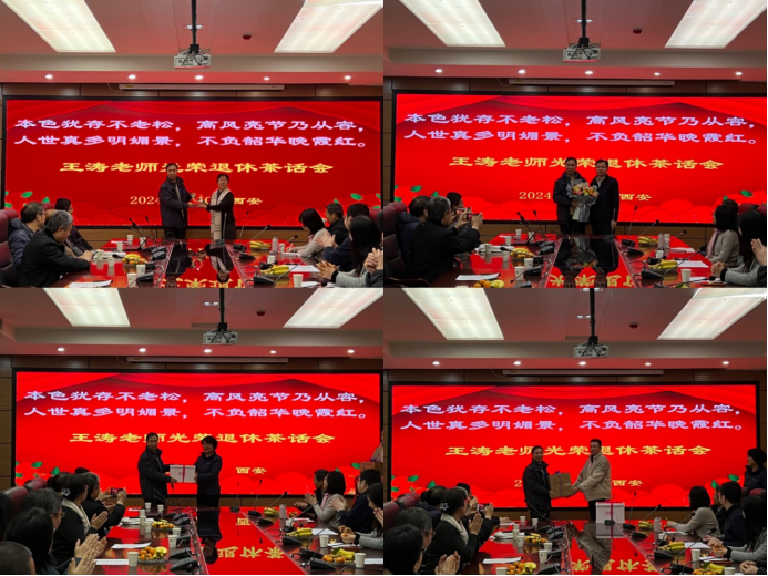 第二阶段:翰墨书香,桃李不言世代流芳;苍松傲雪,下自成蹊永续安康。首先,程文、吴罗长、周蓓蓓分别发表讲话,高度肯定和衷心感谢王涛老师从教39年间对学院和市政系教学、科研及实验室管理工作所做的贡献,祝愿他在未来的日子里幸福安康,享受美好的退休生活。同时,程文、李家科、高扬等为王涛老师献上鲜花并赠送了贺卡和纪念品。随后,王涛老师动情地抒发了自己的退休感言,分享了任教以来的工作心得,对学院、市政系和实验中心的多年来的支持与帮助表示感谢,也祝愿大家未来硕果累累,顺心如意。接着,王老师的同事好友王飞虎老师、学生代表李小周,以及李怀恩、冯民权、刘玉玲、徐志嫱、宋策、高扬等十几位市政系教师深情回顾了王老师执教期间在教学、科研、生活中的精彩片段,对王老师认真、耐心、踏实、奉献的工作态度,低调随和、乐于助人的品质给予了高度评价,并真诚祝福王老师退休的生活更加丰富多彩。