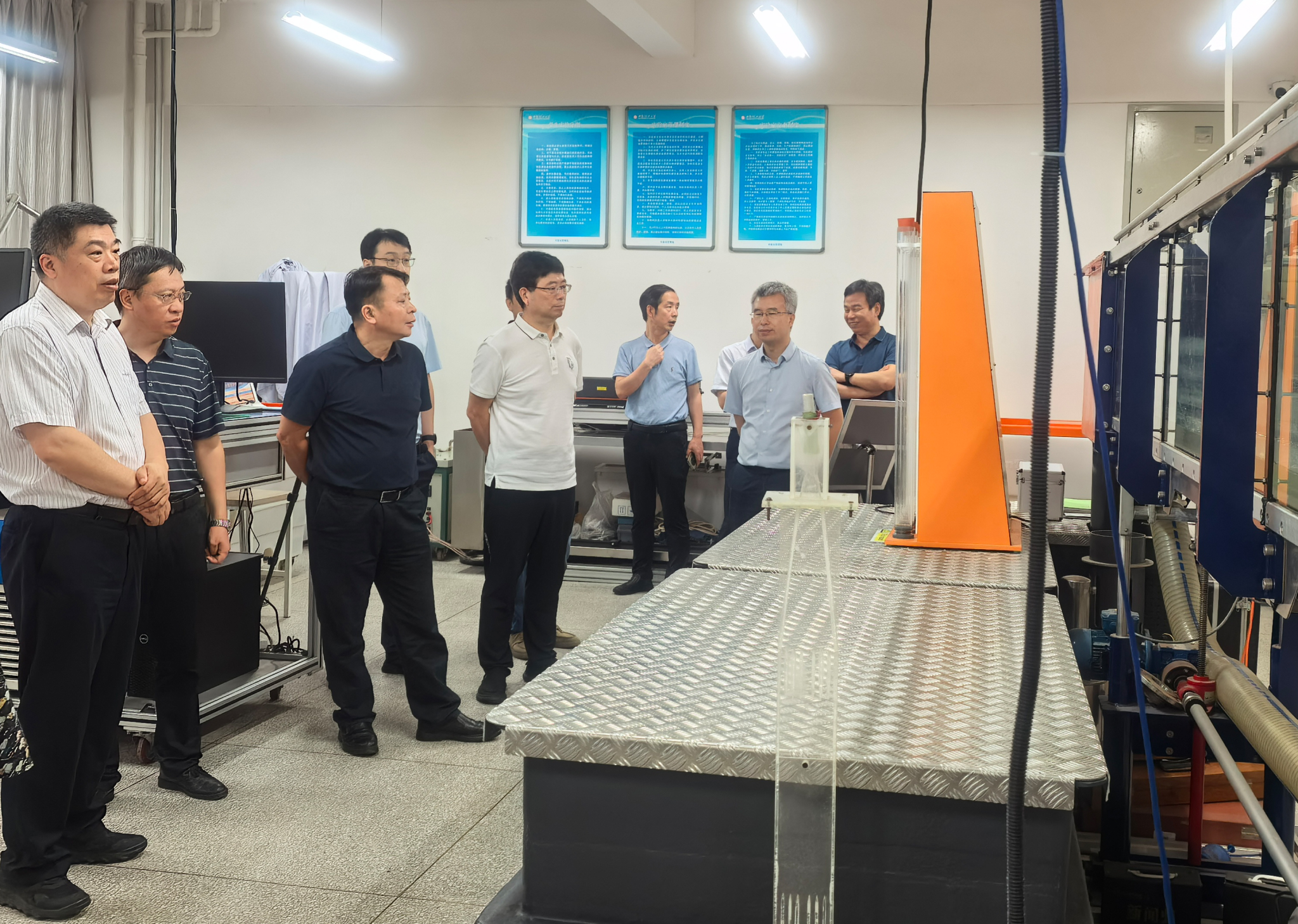 颜建国汇报了PA集团官方网站基本情况,与会人员围绕科技创新平台建设、国家级科研项目、科技成果转化、校企合作和联合创新模式等方面内容进行了深入交流。并在会后共同参观了水工大厅、水力学大厅等相关实验室。