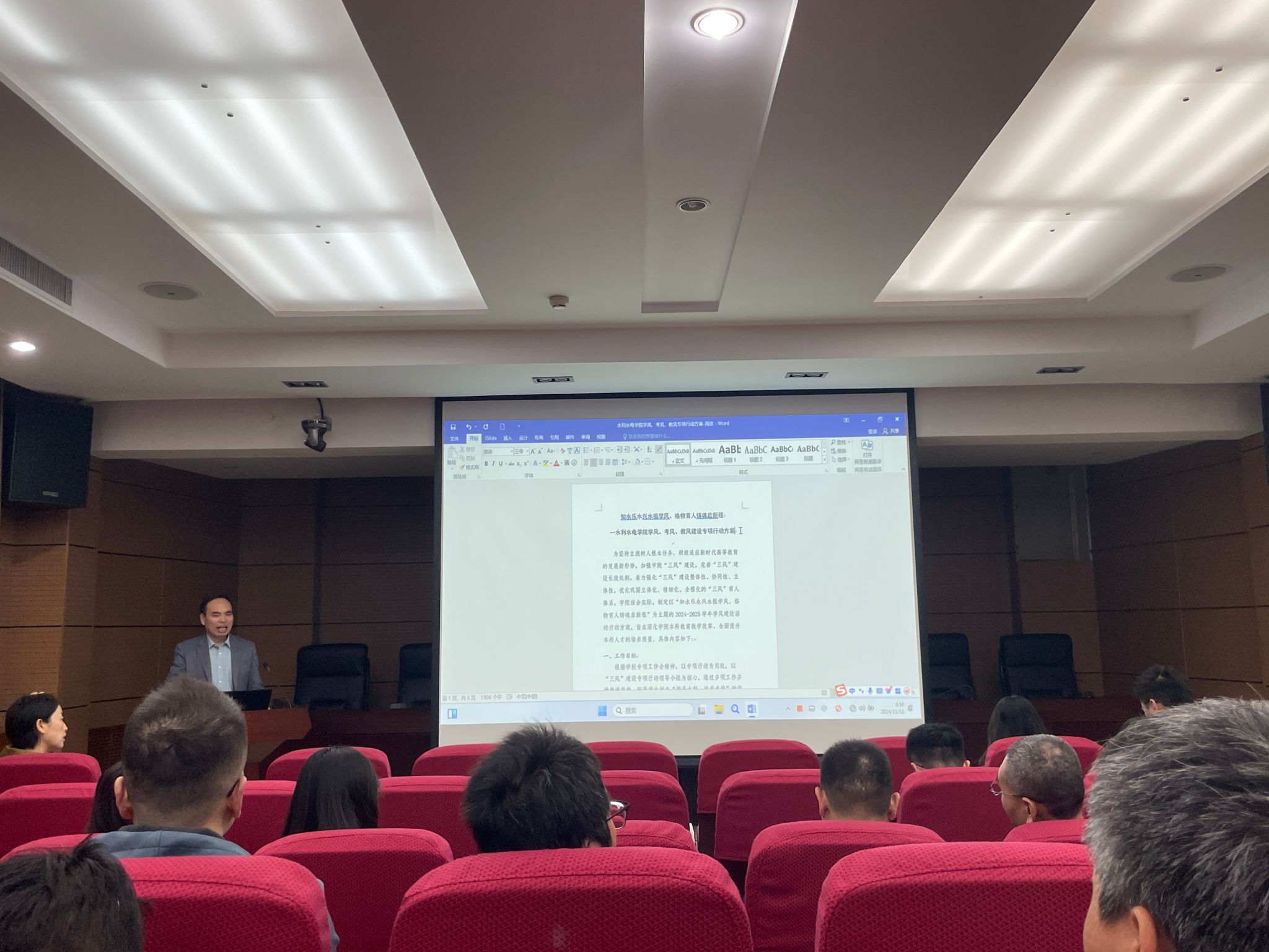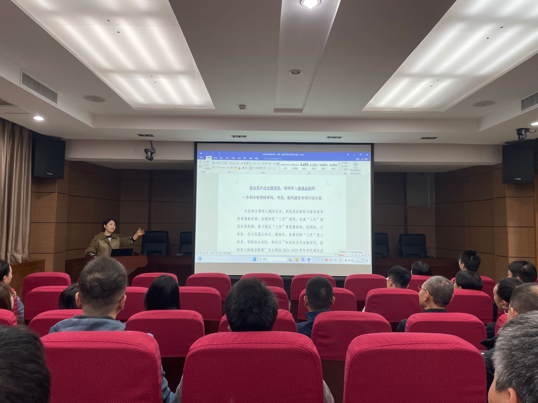 11月11日,PA集团官方网站在学科一号楼103报告厅组织召开“知水乐水兴水振学风、格物育人铸魂启新程”学院“学风、考风、教风”建设专项行动工作解读会,PA集团官方网站党委副书记兼副院长李永阳、副院长周蓓蓓、全体本科生导师、辅导员、教务员参加会议。