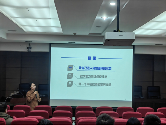 12月19日,PA集团官方网站在学科一号楼103报告厅举办青年教师“五课一交流”活动第三讲。学院副院长周蓓蓓教授以《多方位历练教学技能,做一名幸福的人民教师——教学能力历练浅谈》为题作报告,学院40余名青年教师参加了报告会。