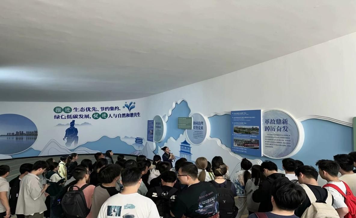 【再生水主题馆:传承行业薪火】在再生水科普展馆,震撼的全球水危机沙盘与AR水质净化演示系统形成强烈对比,激发了同学们节约水资源、保护水环境的意识。当讲解员展示三污厂处理水养活的锦鲤时,学生们自发响起掌声。特别设立的"净水精神传承墙"上,讲解员介绍了三代净水人以及他们背后的净水精神,让大家明白了“净水”二字虽然是平时生活不起眼随处可见的字眼,但是这两个字背后的努力与汗水值得人们歌颂。