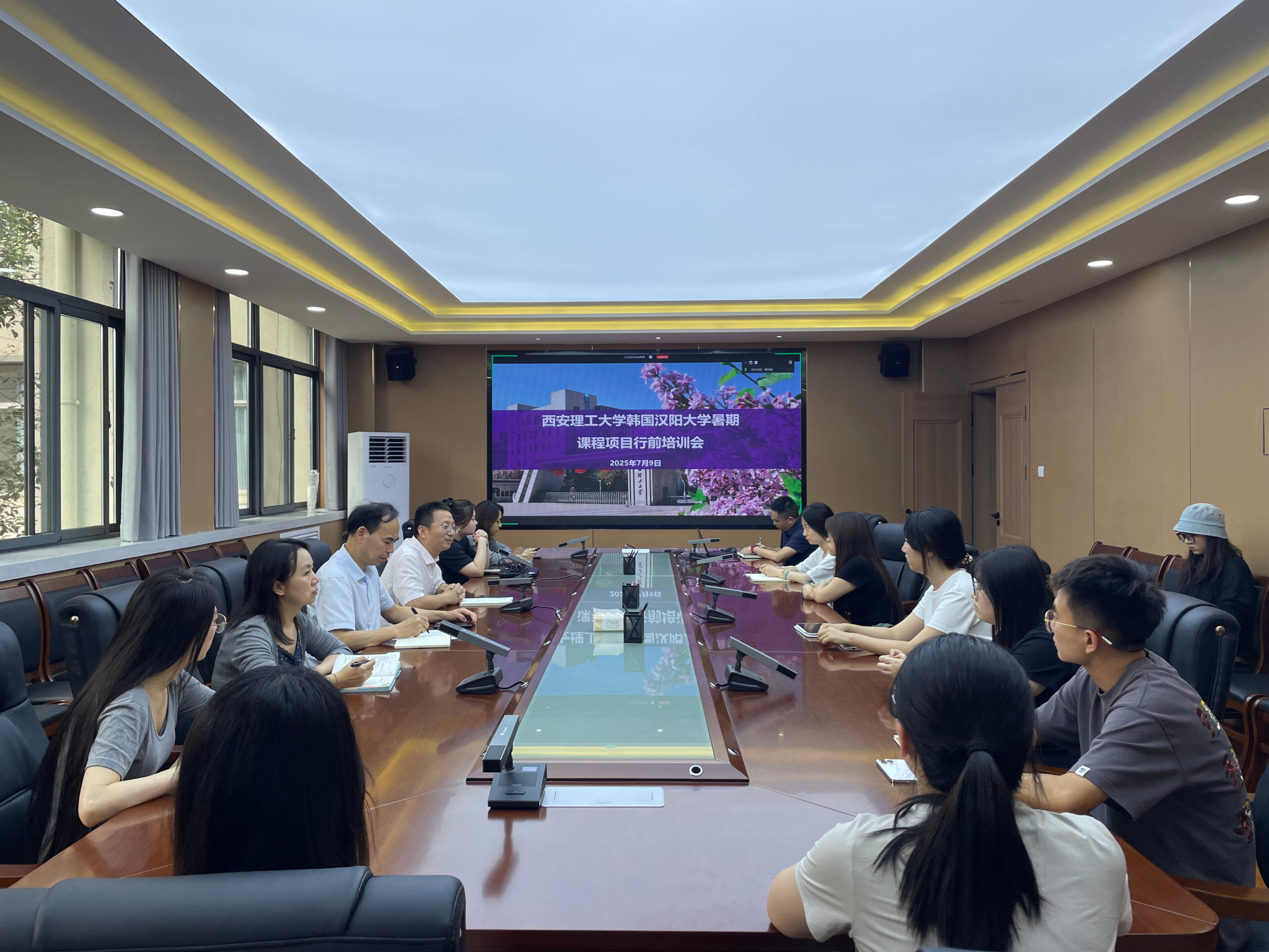 7月9日,PA集团在教四楼226会议室召开赴韩国汉阳大学暑期课程项目行前培训会。学校国际处副处长蒋小龙,学院党委副书记李永阳,国际处赵睿、朱未未,带队教师杨元园、赵卉伊褶、李一博、王倩,以及暑期课程项目学生参加会议。