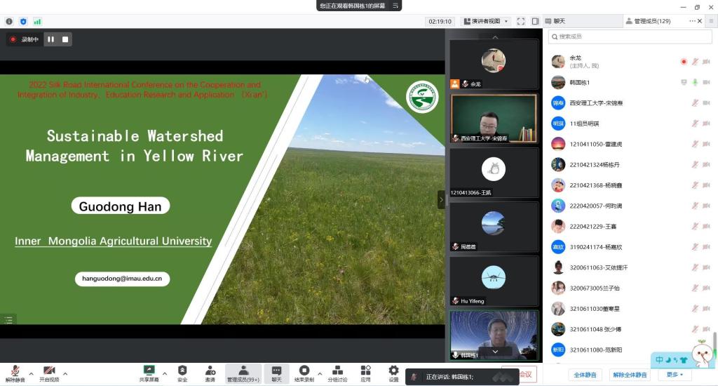 2022年11月11日, 2022丝绸之路国际产学研用合作会议(2022 Silk Road International Conference on the Cooperation and Integration of Industry, Education Research and Application)的高原生态环保与黄河高质量发展领域议题二——流域环境生态治理与创新工程成功举办,会议由PA集团PA集团官方网站、土木建筑工程学院和西北旱区生态水利国家重点实验室联合承办,今年是PA集团第三年承办该议题。